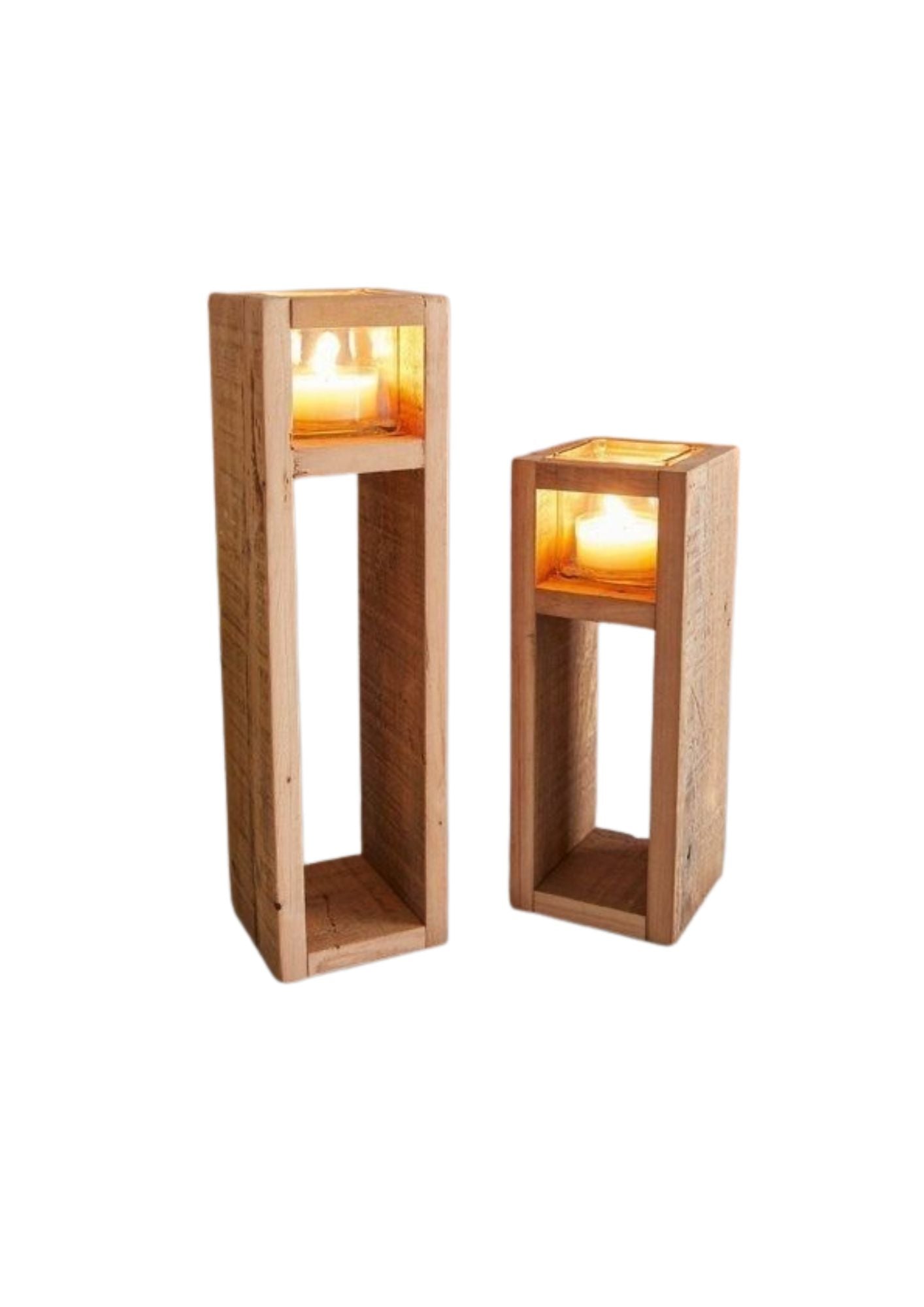 Mit der Holzlichtsäule bringst du Atmosphäre und Stil in dein Zuhause. Das minimalistische Design aus massivem Holz umrahmt das Teelicht auf elegante Weise und macht aus einer einfachen Kerze ein dekoratives Highlight.