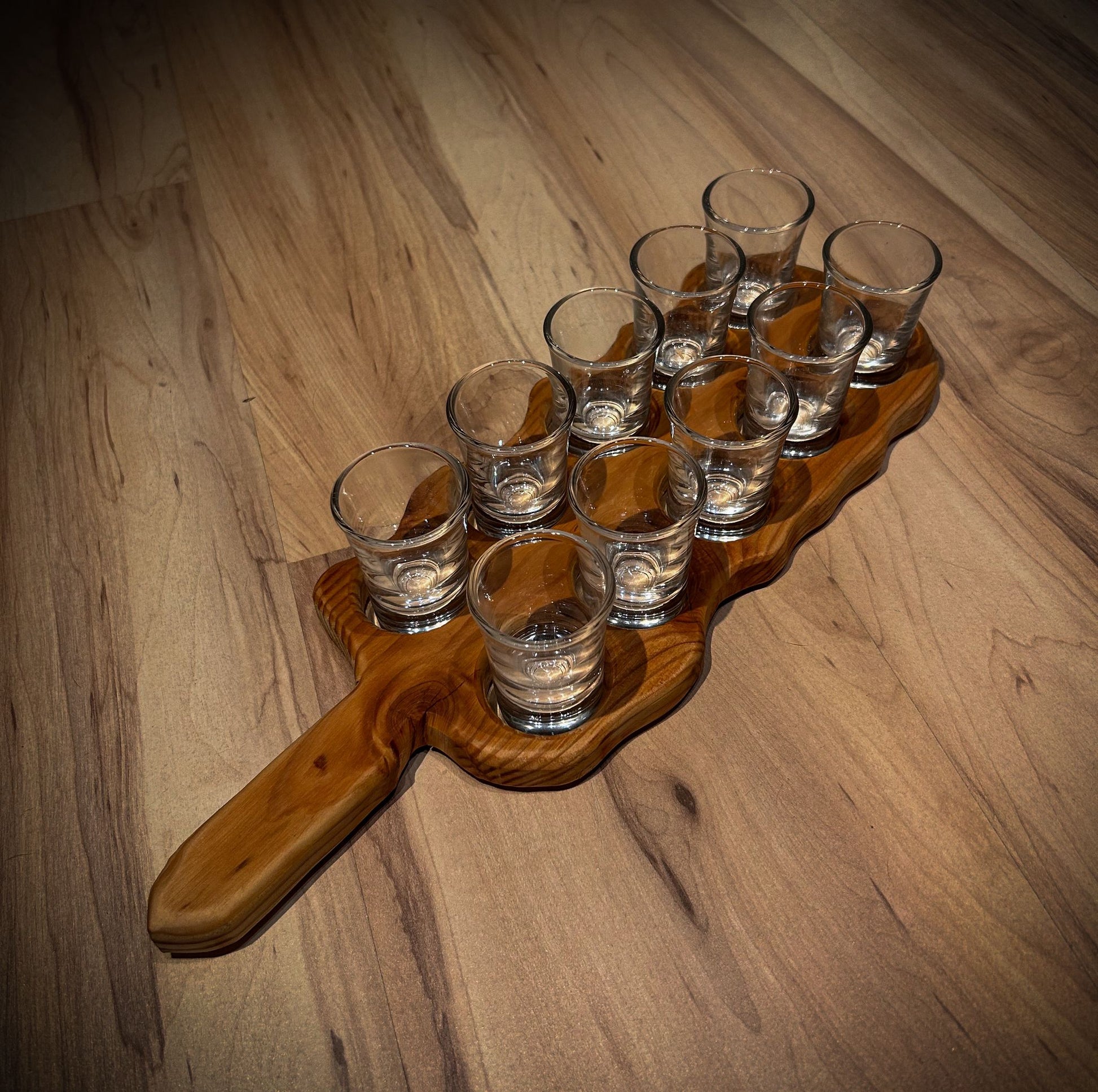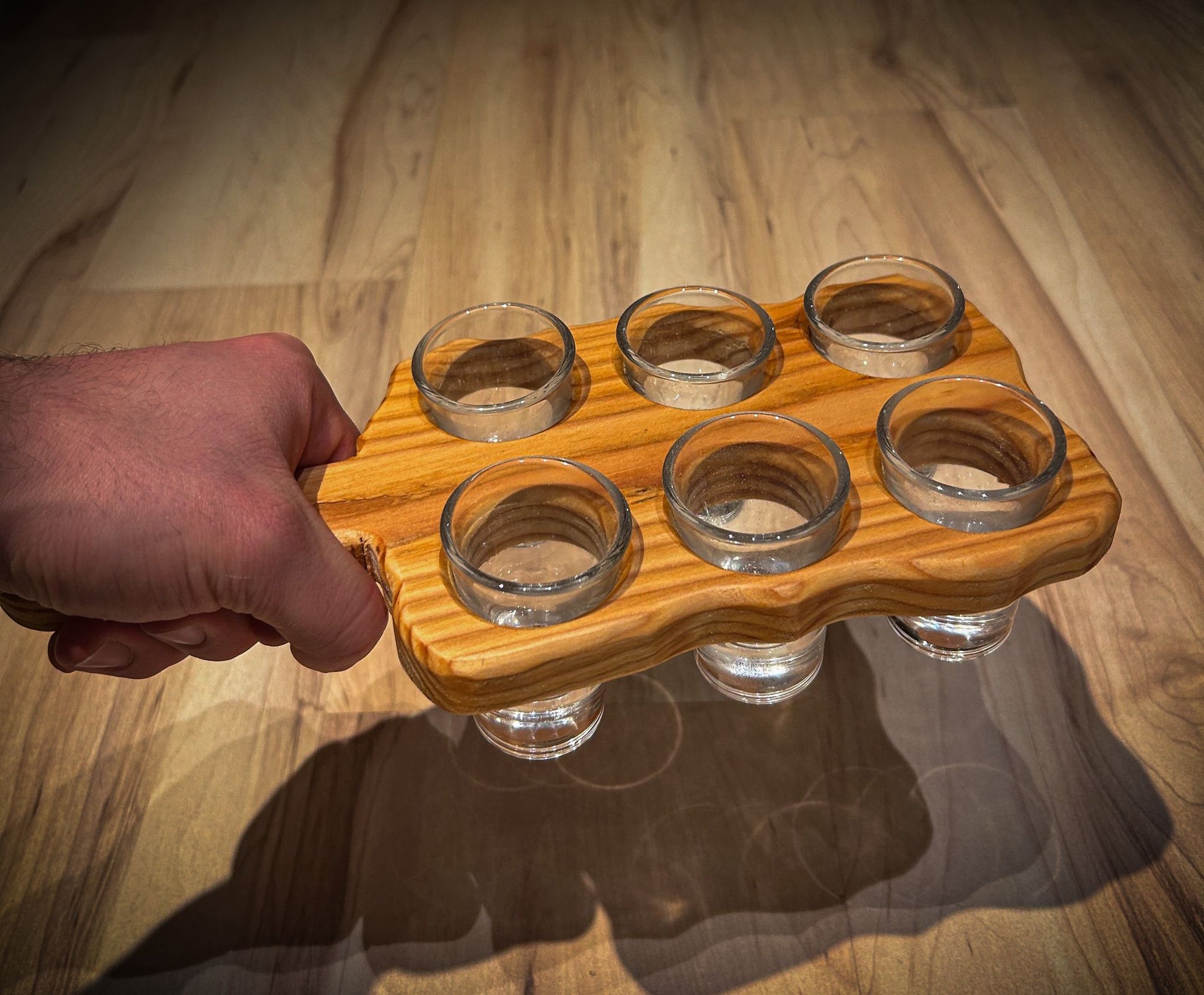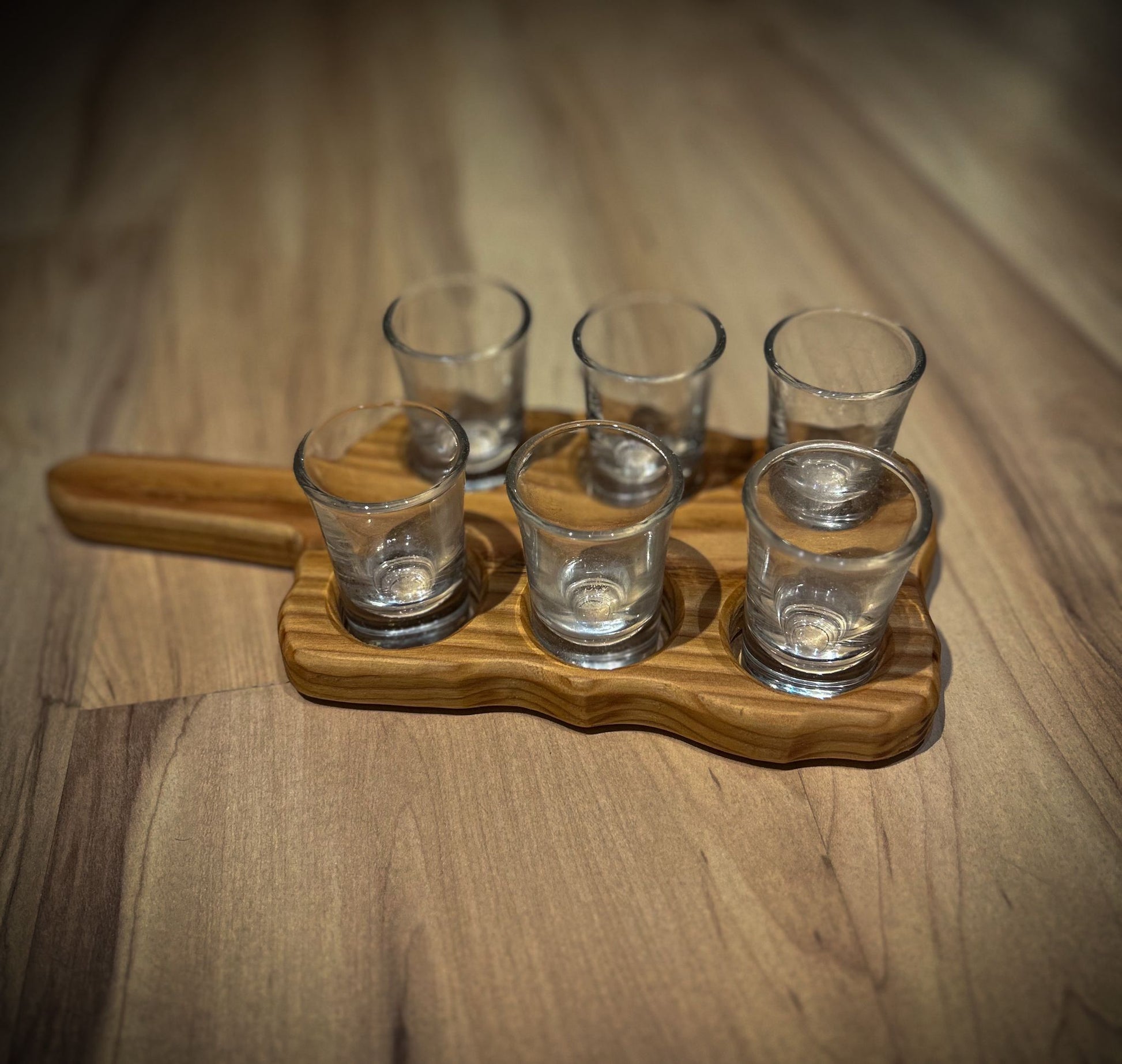 Dieser Schnapsglashalter erfüllt einen einfachen, aber entscheidenden Zweck. Er ermöglicht es, mehrere Gläser sicher, kompakt und ohne Risiko des Verschüttens zu transportieren. Das sorgfältig gearbeitete Lärchenholz sorgt für eine stabile Führung der Gläser und erleichtert das Servieren, auch wenn es schnell gehen muss oder viele Personen gleichzeitig versorgt werden sollen.